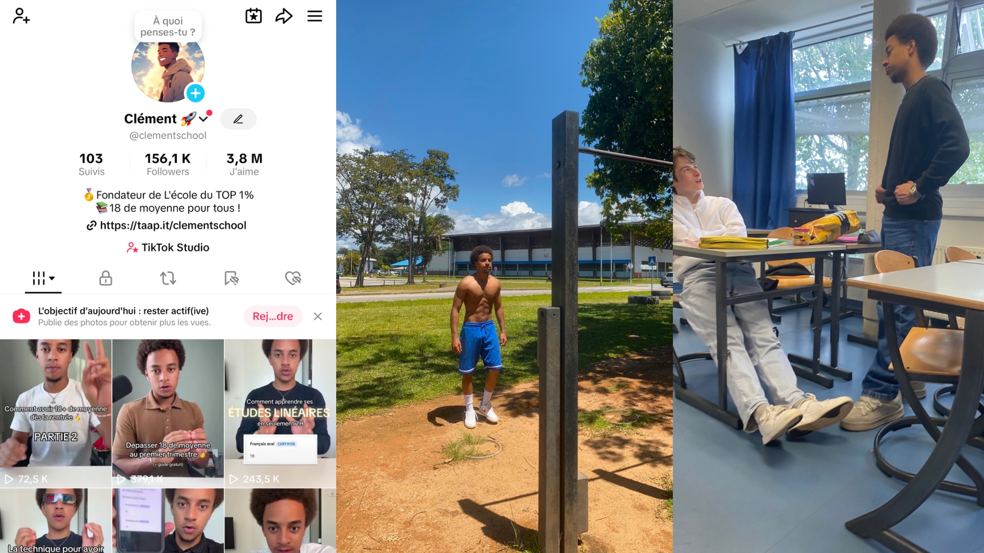 Aujourd’hui, sur les réseaux sociaux, j’aide les élèves à obtenir de meilleures notes en expliquant les techniques qui m’ont permis d’atteindre 19 de moyenne générale en terminale. Je suis actuellement dans la meilleure licence d’économie-gestion de France à l’université Paris Dauphine, jonglant entre les cours, le sport et la création de contenu. Mais ça n’a pas toujours été le cas !
