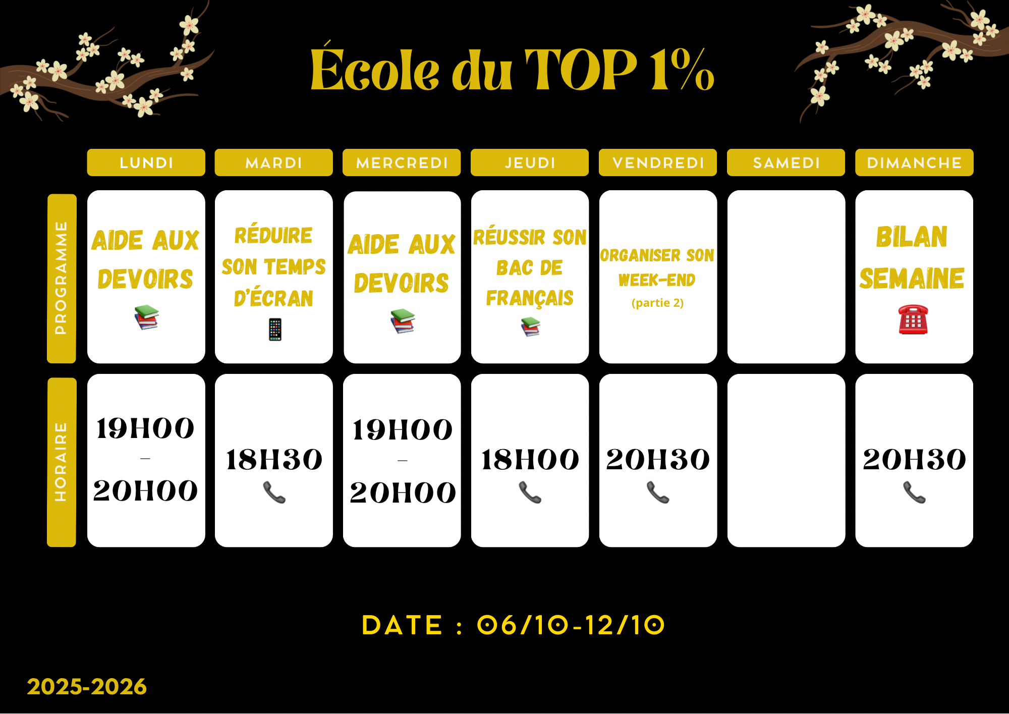 Planning de la semaine du 6 octobre 2025
